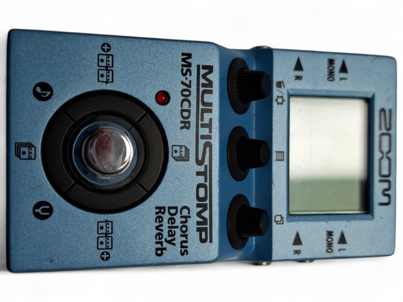 This versatile Zoom MS-70CDR Multistomp guitar pedal offers a wide range of effects and processing capabilities in a compact and durable design. With its intuitive controls and high-quality sound, it's an excellent choice for musicians seeking to expand their tonal palette. The pedal delivers a diverse selection of reverbs, delays, modulations, and more, allowing you to craft your unique sonic signature.