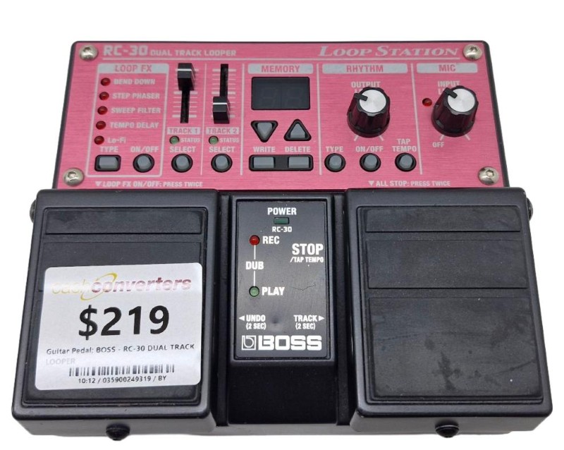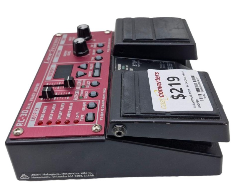 This BOSS RC-30 DUAL TRACK LOOPER guitar pedal is a versatile and powerful looping device that allows you to create layered musical compositions. With its intuitive controls and dual-track functionality, you can easily record, overdub, and play back loops, making it a valuable tool for musicians of all skill levels. Its compact design and robust construction ensure reliable performance, even in demanding live settings.