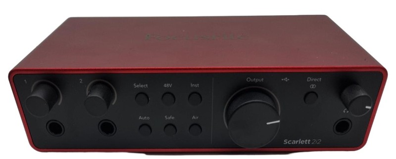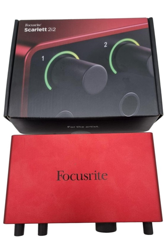 This Focusrite Scarlett 2i2 4th Gen guitar pedal is a versatile audio interface designed to enhance your musical creativity. Featuring high-quality preamps and a sleek, compact design, this interface allows you to record, monitor, and process your audio with ease. The included accessories, such as the USB cable and aux attachment, provide the necessary connectivity to seamlessly integrate this pedal into your setup.
