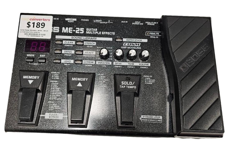 This versatile ROLAND / BOSS ME-25 GUITAR MULTIPLE EFFECTS pedal offers a comprehensive suite of high-quality effects to elevate your guitar playing. With its intuitive interface and powerful processing capabilities, you can explore a wide range of tones and textures to enhance your musical expression. Whether you're looking to add depth, texture, or creative flair to your sound, this pedal delivers exceptional performance and flexibility.