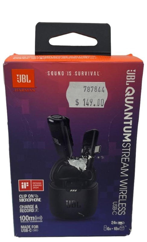 This JBL QUANTUM STREAM WIRELESS cordless microphone is a versatile accessory for musical instrument setups. Designed for seamless wireless performance, it delivers clear and reliable audio quality. With a charger and original box included, this microphone is ready to enhance your recording or live sound experience.