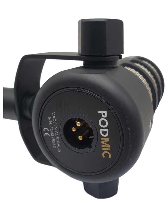 This Rode PODMIC microphone is a versatile audio accessory suitable for a range of musical applications. With its robust construction and sleek design, it delivers clear, high-quality sound performance. The included stand piece provides a secure and adjustable mounting solution.