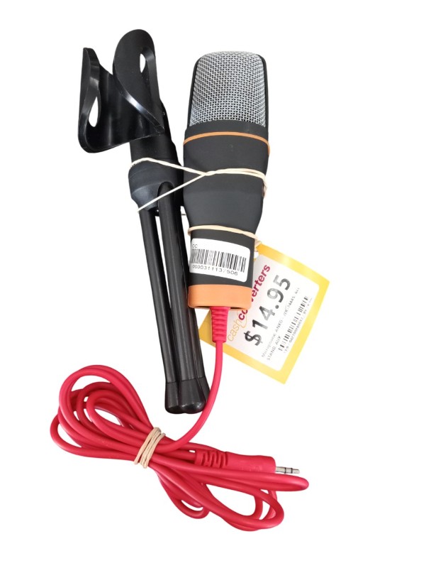 This high-quality ANKO JLR-74445 microphone is a versatile accessory for your musical setup. With a stand and aux cable included, it offers convenient connectivity and support. Despite some light cosmetic wear, the microphone remains in great working condition, ready to capture your performances with clarity.