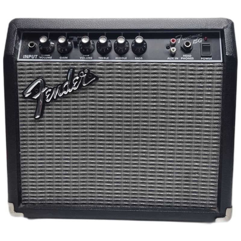 This compact Fender 15G guitar amplifier is a versatile and reliable companion for your musical journey. Featuring a single input and a built-in speaker, it delivers a clear and dynamic sound to enhance your practice sessions or small-scale performances. Whether you're a beginner or an experienced player, this amplifier's straightforward controls and compact design make it a practical choice for your needs.