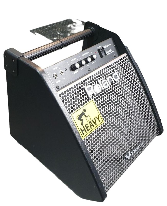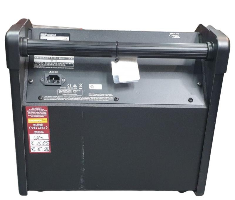 This compact ROLAND PM-100 guitar amplifier is a versatile and reliable piece of equipment for musicians. With two input channels and a single built-in speaker, it provides a clear and powerful sound for practice or small performances. The included manual and power supply ensure hassle-free setup and operation.