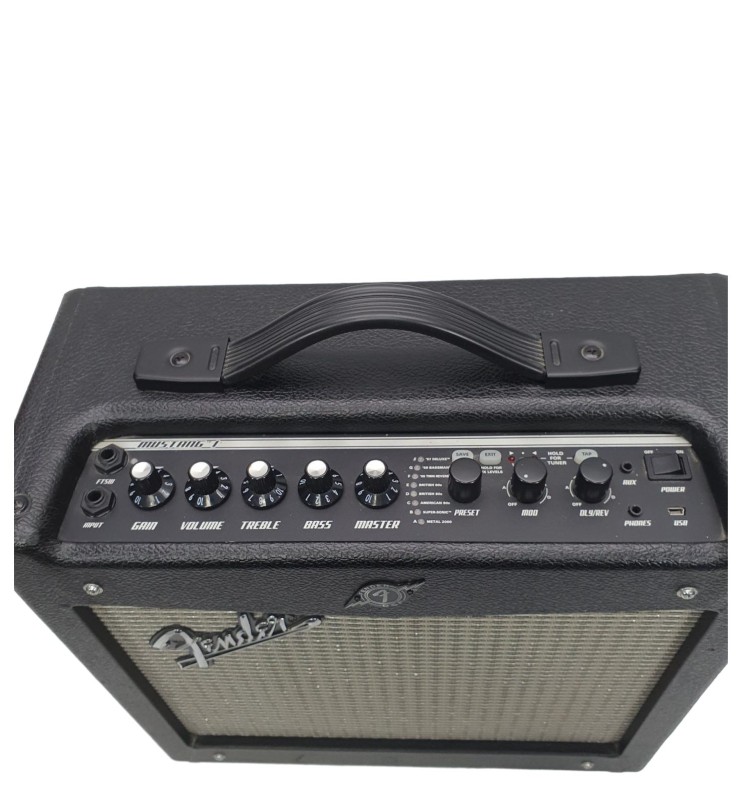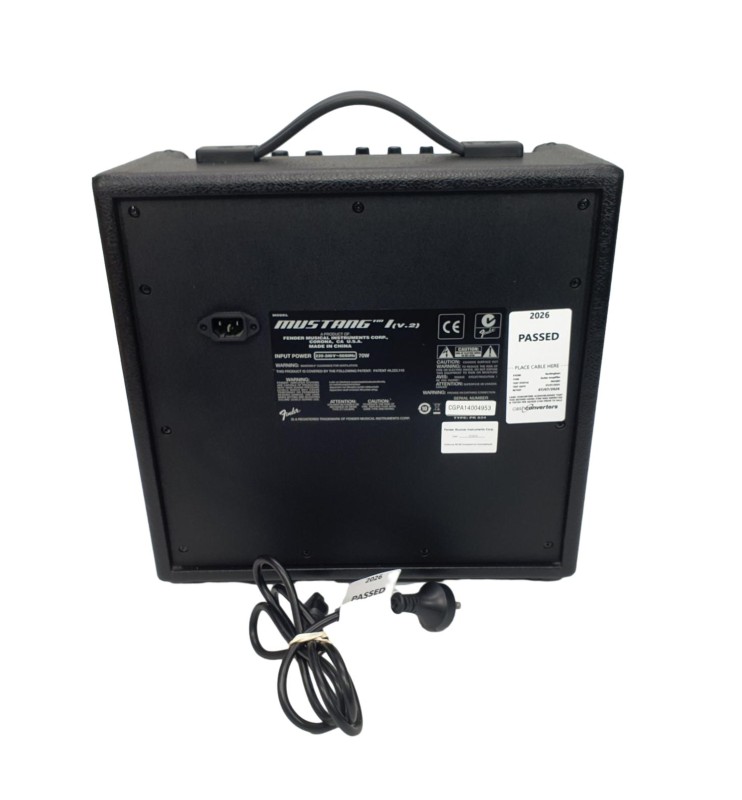 This compact and versatile Fender Mustang 1 (v.2) guitar amplifier is a great choice for practice and small-scale performances. With a single input and a built-in speaker, it delivers a clear and dynamic sound that's perfect for beginners and experienced players alike. Despite some minor signs of wear, this amplifier remains in good condition and ready to provide reliable performance.