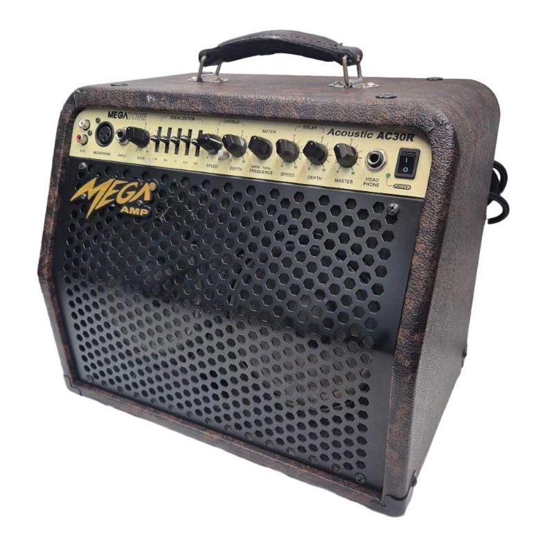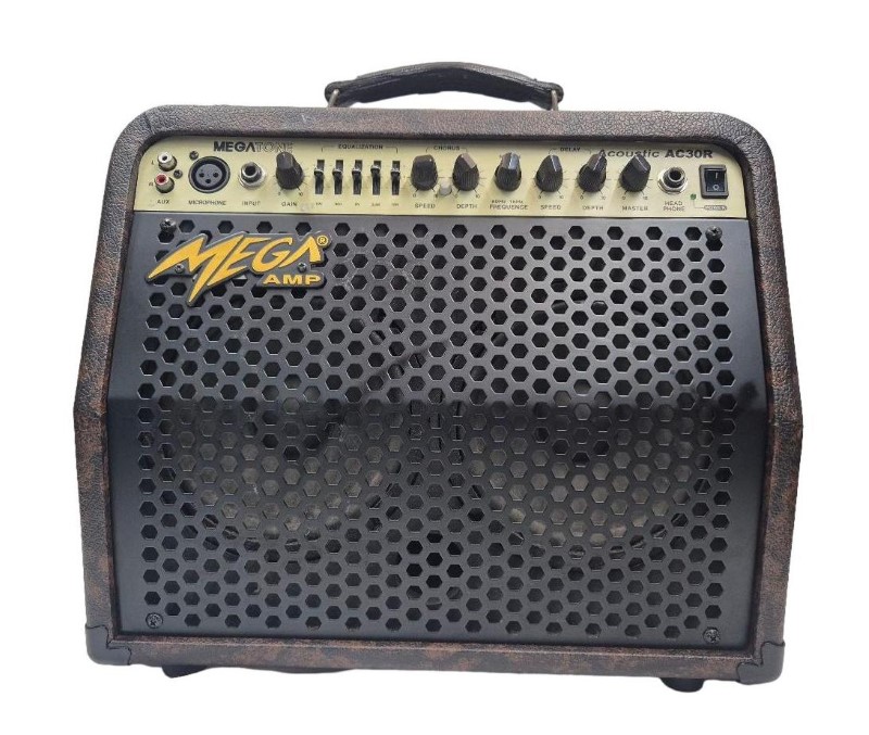 This Megatone Acoustic AC30R guitar amplifier is a reliable and versatile piece of equipment. With two built-in speakers, it delivers a powerful and clear sound to enhance your musical performances. The amplifier is in good condition, showing only minor signs of wear from regular use. It's a dependable choice for musicians seeking a high-quality amplifier to elevate their sound.