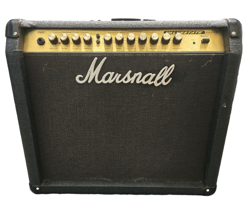 This MARSHALL VALVESTATE VS65R guitar amplifier is a reliable and versatile piece of equipment. Featuring a valve-driven design, it delivers a rich, warm tone that is perfect for a variety of musical styles. The amplifier is functional, though it does show signs of heavy wear from previous use. Included with the unit are a powerlead and a dustcover, providing additional convenience and protection.