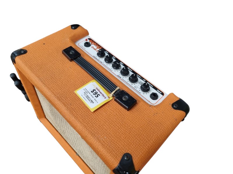 This compact ORANGE CRUSH 12 guitar amplifier is a reliable and versatile choice for musicians. With its powerful performance and convenient functions, it delivers a rich and dynamic sound to enhance your musical experience. Despite some light cosmetic wear, this amplifier remains in excellent condition and is ready to take your playing to new heights.