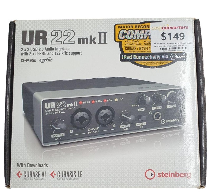 This Steinberg ur22mkii Audio Interface is a versatile and reliable piece of DJ equipment. Featuring high-quality audio processing, the interface delivers crystal-clear sound for your music production and live performances. With its robust construction and intuitive controls, this interface makes it easy to capture and refine your creative ideas. Whether you're a seasoned professional or an aspiring artist, the ur22mkii is an essential tool for your audio setup.