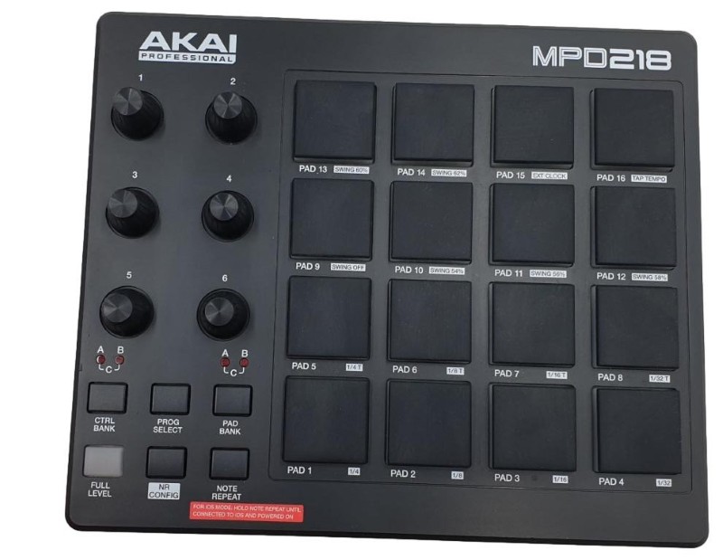 This AKAI MPD218 MIDI PAD CONTROLLER WITH 16 MPC PADS is a versatile audio mixer designed for musicians and DJs. Its 16 responsive MPC-style pads allow for precise control and expressive performance. Despite some light cosmetic wear, this mixer remains a reliable and capable tool for creating and manipulating audio.