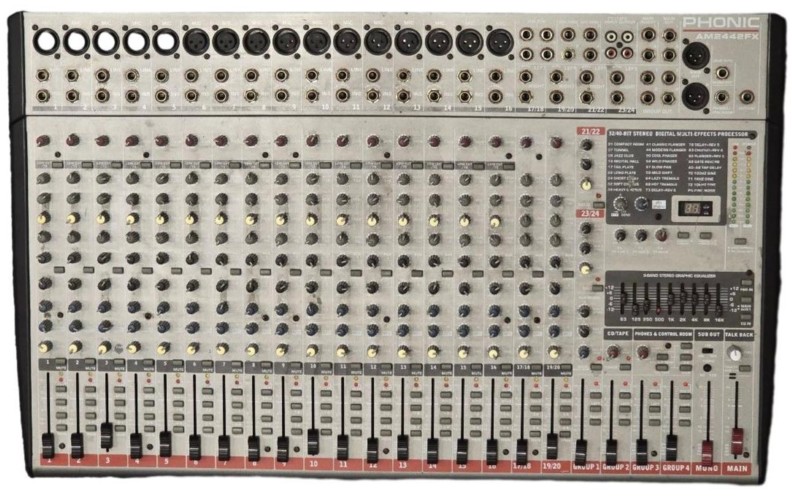 This versatile PHONIC AM2442FX audio mixer is a reliable choice for DJs and musicians. With a range of features including multiple input channels, built-in effects, and intuitive controls, it delivers professional-grade performance. Its compact design makes it easy to transport, while the light cosmetic wear reflects its well-loved history.