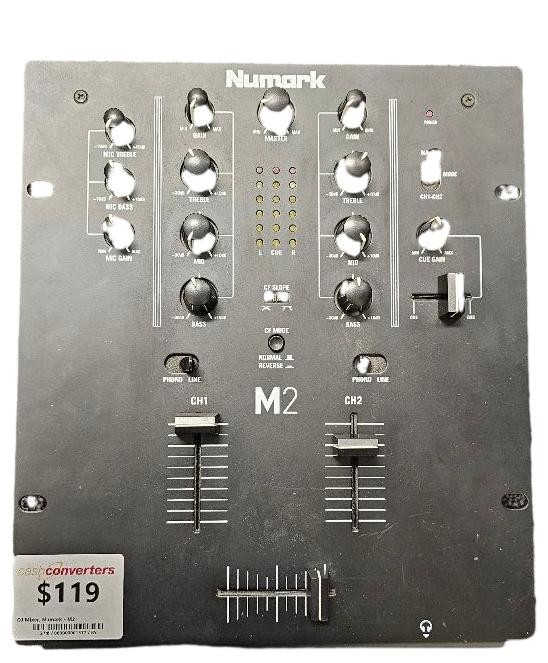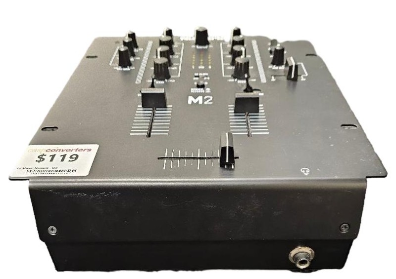 This Numark M2 DJ mixer is a versatile and reliable piece of equipment designed to enhance your musical performances. With its intuitive controls and robust construction, it allows you to seamlessly blend and transition between tracks, creating dynamic mixes that captivate your audience. Despite some light cosmetic wear, this mixer remains in excellent working condition, ready to elevate your DJ setup.
