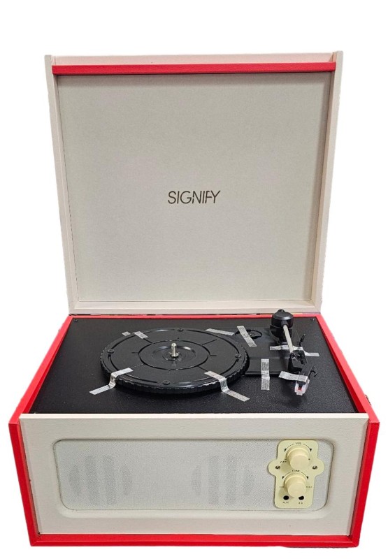 This retro Signify EA1371 Retro Turntable With Legs is a versatile DJ turntable that offers a stylish and functional addition to your music setup. Featuring a sleek design with sturdy legs, this turntable provides a stable and reliable platform for your vinyl records. With a power supply included, you can easily connect and start spinning your favorite tunes.