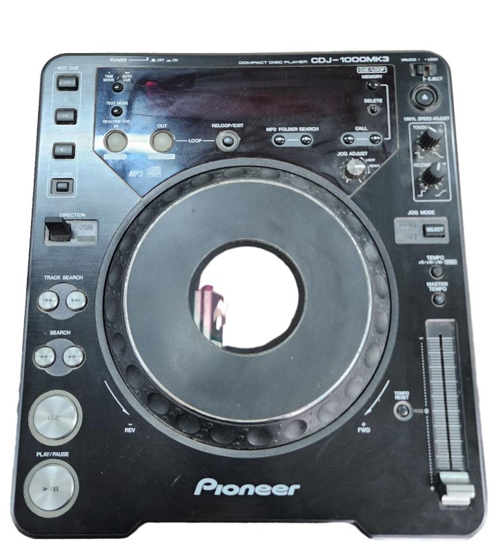 This professional-grade digital CD deck from PIONEER, the CDJ-1000MK3, is a reliable and versatile piece of DJ equipment. With its intuitive controls and high-quality performance, it's an excellent choice for both amateur and experienced DJs. The included power cable ensures hassle-free setup and operation. Despite some minor signs of wear, this turntable remains in good condition, ready to provide years of dependable service.