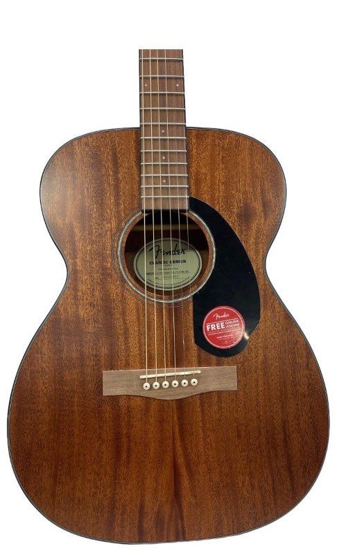 This Fender Classic Design Series CC-60S Concert Pack V2 acoustic guitar in All-Mahogany with a Walnut finish is a well-crafted instrument that delivers a warm, resonant tone. Its concert-sized body provides a comfortable playing experience, while the mahogany construction ensures a rich, balanced sound. Featuring a soft, black case for convenient transport and storage, this guitar is in good condition with little sign of wear, making it a reliable choice for both beginner and experienced players.