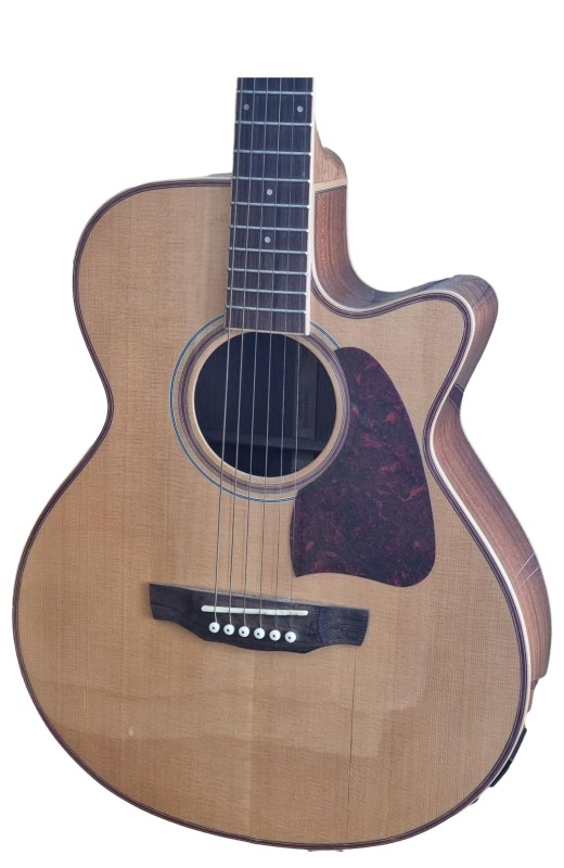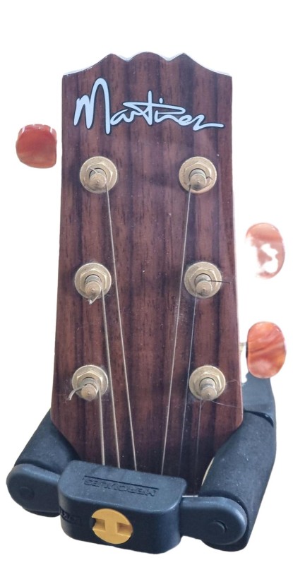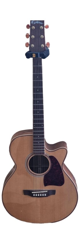 This Martinez TIMBERIDGE SERIES MTFC-1B-NGL acoustic guitar is a versatile musical instrument with a rich, warm tone. Its solid wood construction and well-designed features make it a reliable choice for both beginner and experienced players. While it shows light cosmetic wear from previous use, the guitar remains in good working condition and is ready to be enjoyed by its next owner.