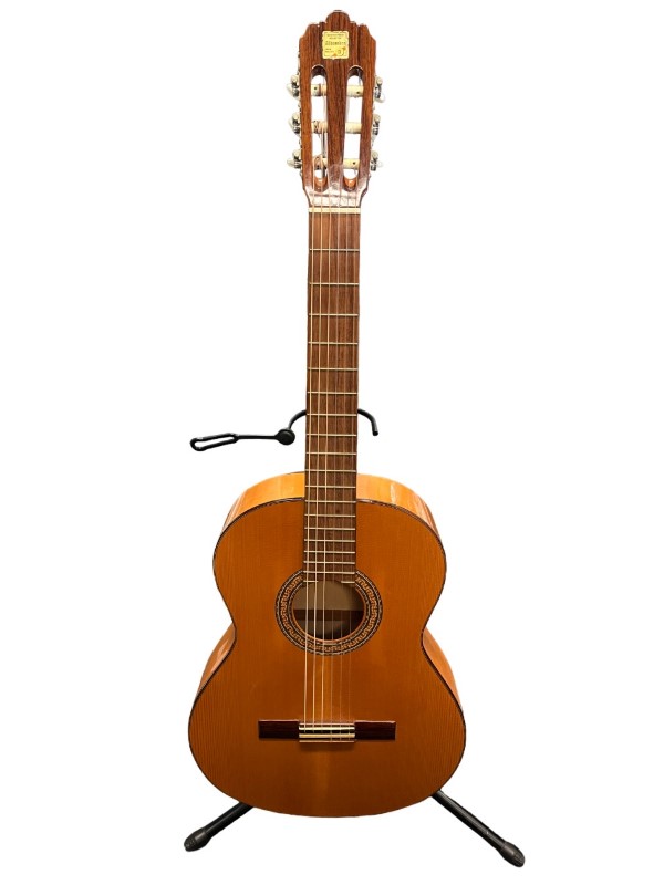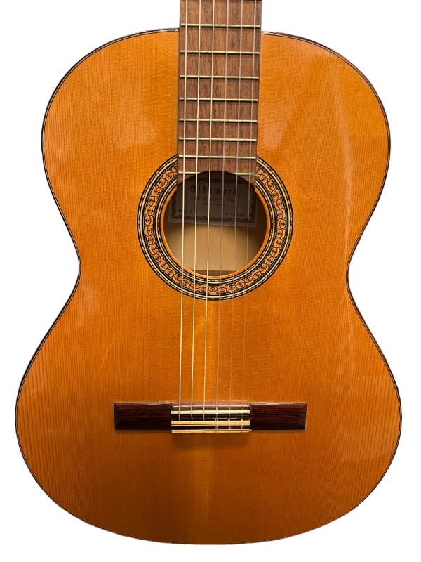 This Alhambra 3F Flamenco Acoustic Guitar is a well-crafted musical instrument that delivers a rich, vibrant sound. Featuring a classic flamenco design, this guitar is perfect for musicians seeking a dynamic and expressive playing experience. The included case ensures safe transportation and storage.