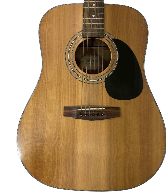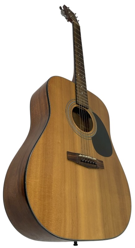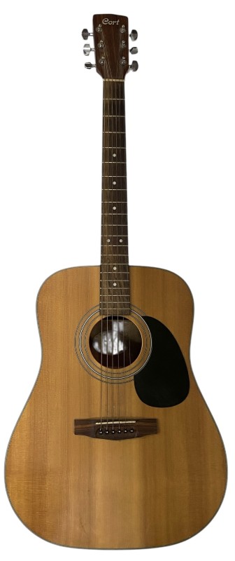 This Cort AD-850 NS acoustic guitar is a well-crafted musical instrument that delivers a rich, resonant sound. Its solid spruce top and mahogany back and sides provide excellent tone and projection, while the rosewood fingerboard ensures smooth playability. Although it does not come with a case, this guitar is in good condition with only minor signs of wear, making it a reliable choice for aspiring musicians or seasoned players.