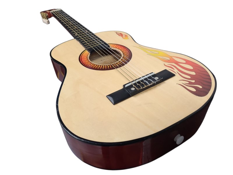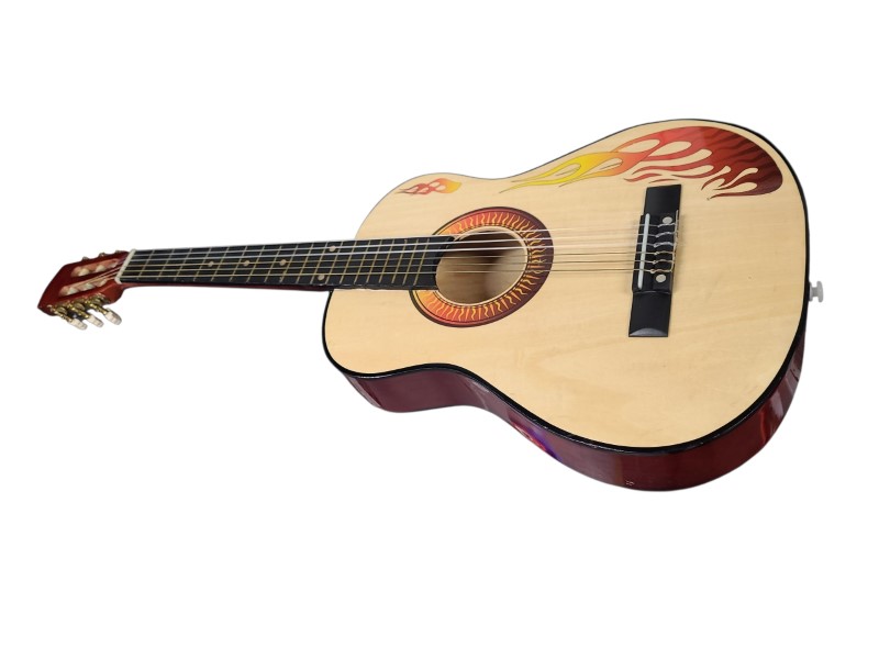 This acoustic guitar is a versatile musical instrument that can be enjoyed by players of all skill levels. With its classic design and quality construction, it delivers a rich, resonant tone that is perfect for a variety of musical styles. Whether you're a beginner or an experienced player, this guitar is sure to provide hours of musical enjoyment.