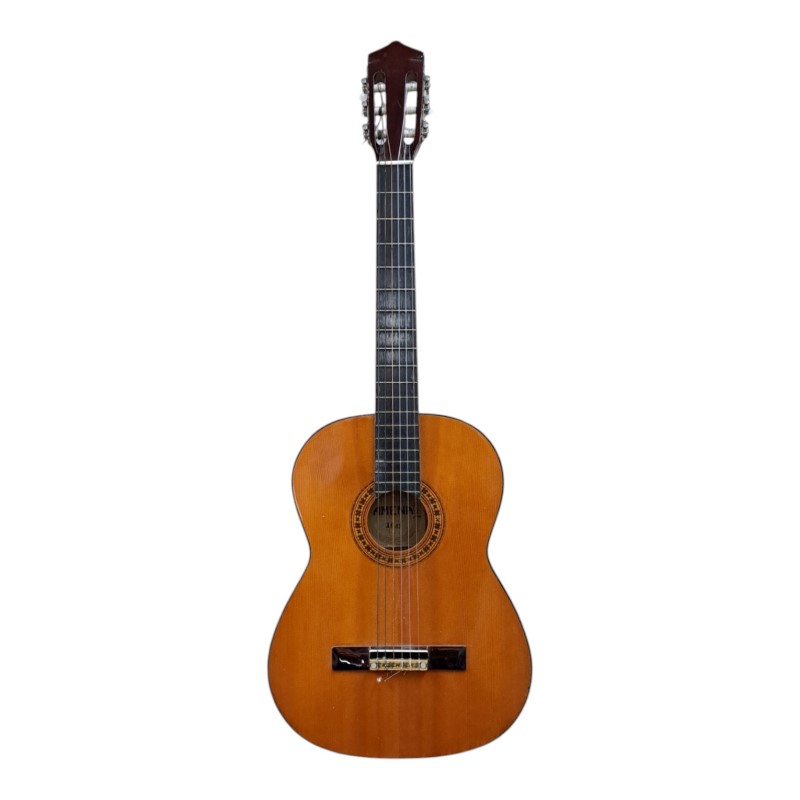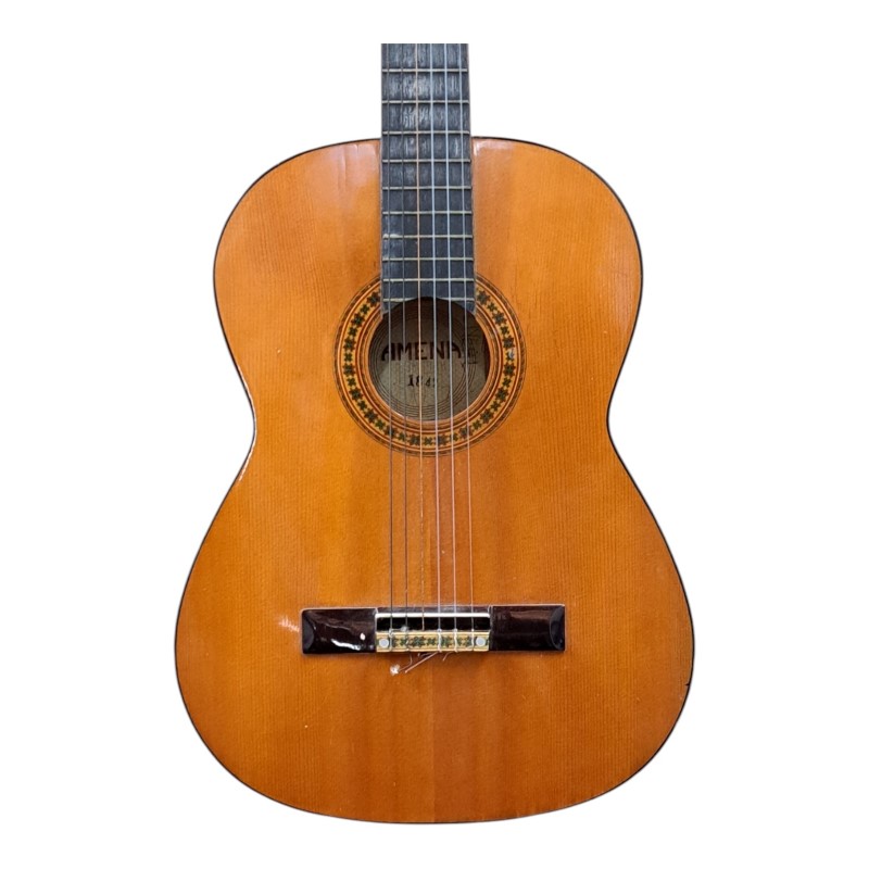 This amena 1842 acoustic guitar is a versatile and well-crafted musical instrument. With its quality construction and pleasing sound, it's a reliable choice for both aspiring and experienced players. While it shows light cosmetic wear from previous use, the guitar remains in good working condition and is ready to provide hours of musical enjoyment.