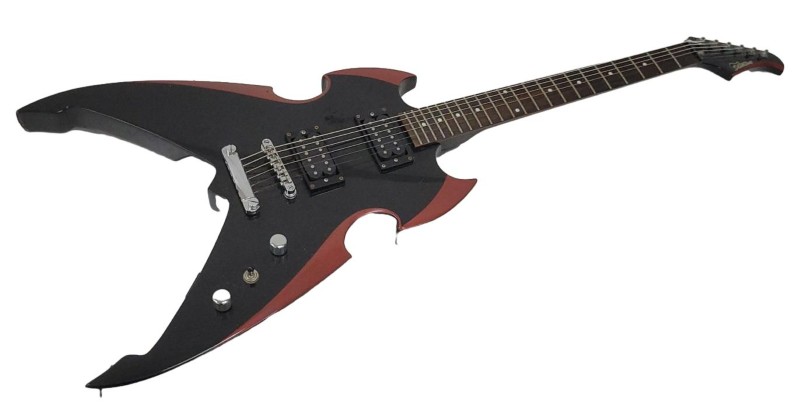 This Silverstone Apocalypse KISS Paul Stanley Signature electric guitar is a unique and visually striking instrument.