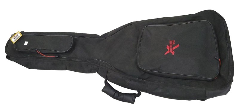 With its distinctive styling and powerful sound, it's sure to turn heads. The included soft case provides convenient storage and protection for the guitar when not in use. While the guitar shows signs of heavy wear from previous use, it remains fully functional and ready to play.
