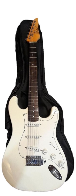 This vintage-inspired Artist ST62 electric guitar in Vintage White is a stylish and versatile instrument. With its iconic body shape and smooth playability, it's perfect for a range of musical styles. The included soft case provides convenient portability and protection for your guitar.