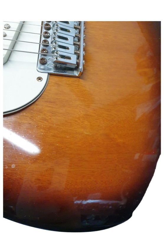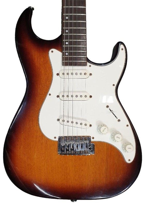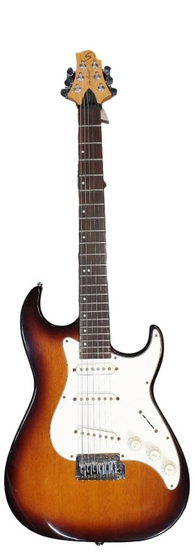 This SAMICK GREG BENNETT MALIBU MB-1/VS electric guitar is a versatile and well-crafted instrument. With its classic design and solid construction, it delivers a rich, balanced tone that is perfect for a variety of musical styles. Despite a small dent, the guitar remains in good condition and is ready to be played. While it does not come with a case, it is a reliable and affordable option for both beginner and experienced musicians.
