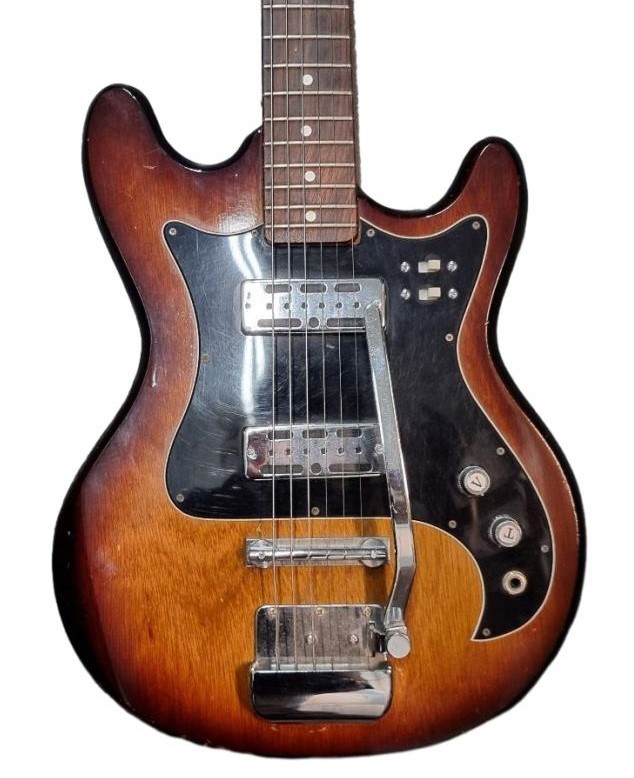 Condition: This item is in used condition, showing visible heavy cosmetic wear. Many marks and chips in paint on the body. A big scuff mark on the right edge of the guitar.