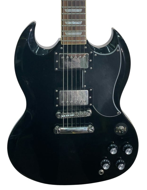 This Epiphone SG Pro electric guitar is a versatile and iconic instrument that has been used by countless musicians over the years. Its sleek, double-cutaway body design provides excellent access to the upper frets, while the powerful humbucking pickups deliver a rich, full-bodied tone perfect for a variety of musical styles. Whether you're a seasoned player or just starting out, this guitar is sure to inspire your creativity and help you take your playing to new heights.