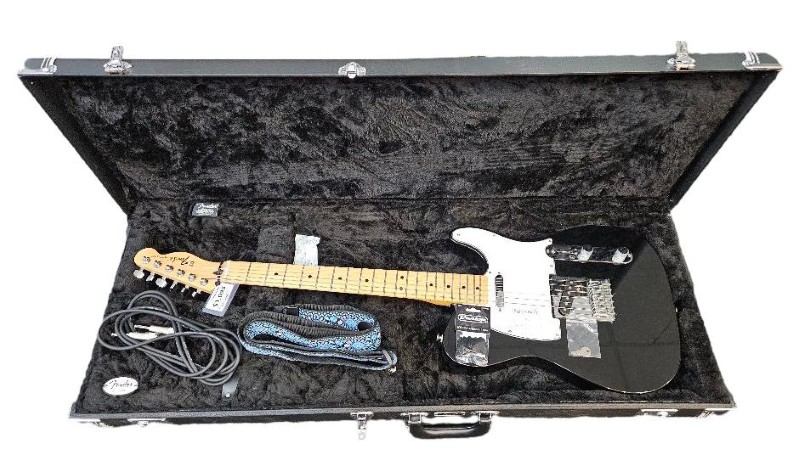 Accessories: Includes a hard case, lead, picks, and a strap.
