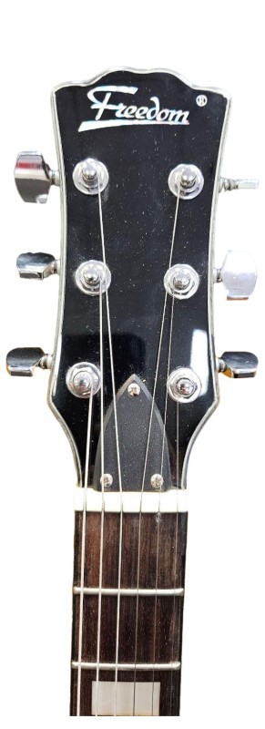 This freedom electric guitar is in good condition, with little sign of wear. It comes with a hard case, providing convenient storage and protection for the instrument. The guitar's quality construction and reliable performance make it a great choice for musicians of all skill levels.
