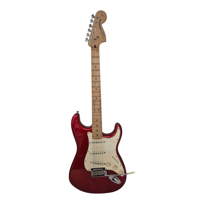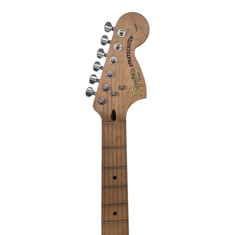 This Fender Squire Stratocaster electric guitar, made in Indonesia, is a well-crafted instrument that offers a classic sound and style. With its distinctive Stratocaster design, this guitar delivers a versatile tone that can be tailored to a variety of musical genres. Its solid construction and attention to detail ensure a smooth and responsive playing experience.