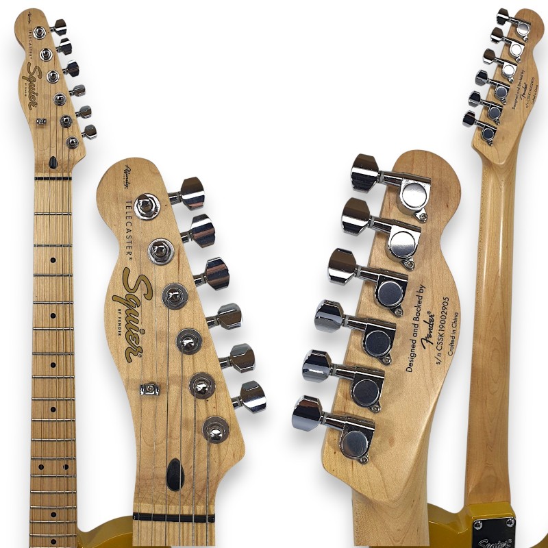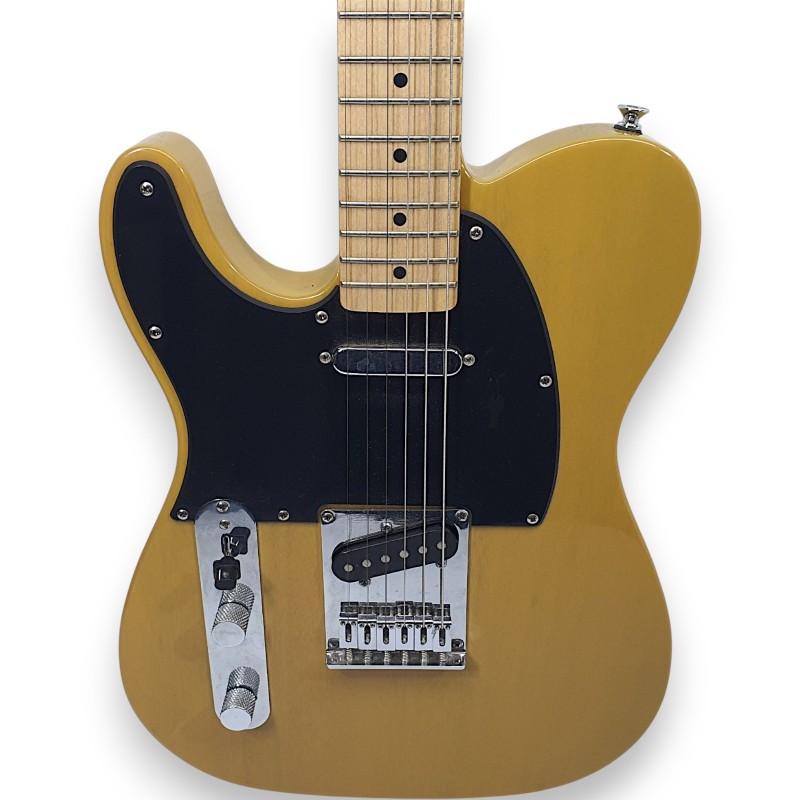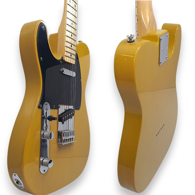 This Squier by Fender Telecaster electric guitar is a versatile and well-crafted instrument. Featuring a classic design, it delivers a rich, balanced tone that is perfect for a variety of musical styles. The guitar is in good condition, with only minor signs of wear, ensuring a reliable and enjoyable playing experience.