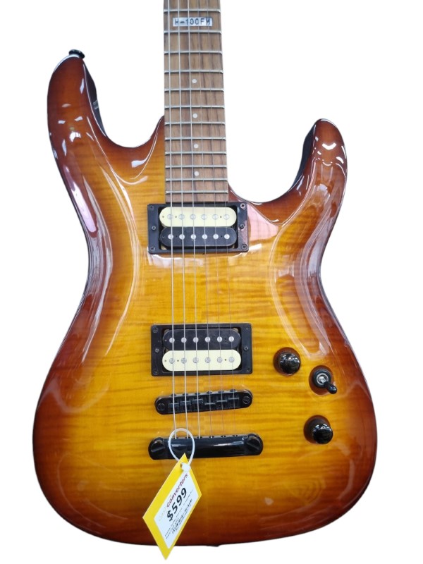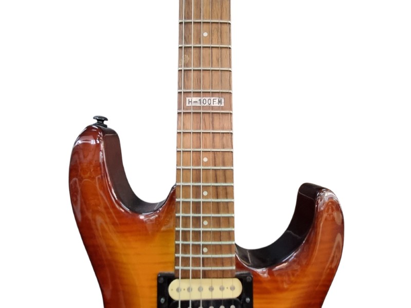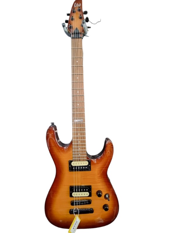 This ESP LTD H-100FM electric guitar is a great choice for musicians seeking a quality instrument. With its solid construction and sleek design, this guitar delivers a rich, powerful tone that will impress. The guitar is in good condition, showing only minor signs of wear from regular use. This versatile instrument is ready to take your playing to new heights.