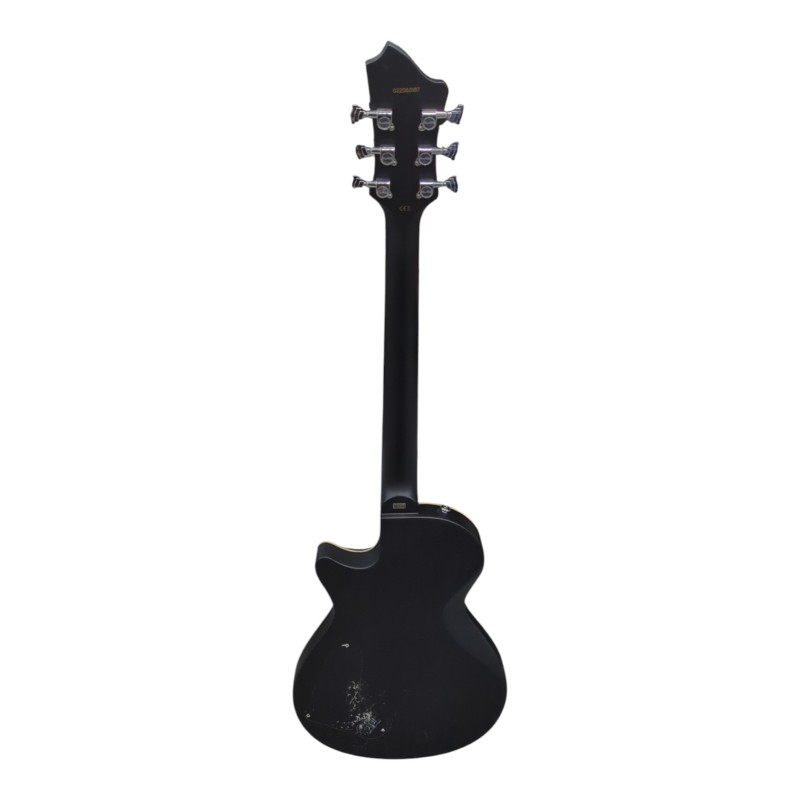 This sleek and versatile Hagstrom Ultra Max electric guitar is a reliable instrument that has stood the test of time. With its smooth playability and rich, resonant tone, this guitar is a joy to perform with. While it shows some minor cosmetic wear and scratches on the back, the functions remain in excellent condition, ensuring a rewarding playing experience.