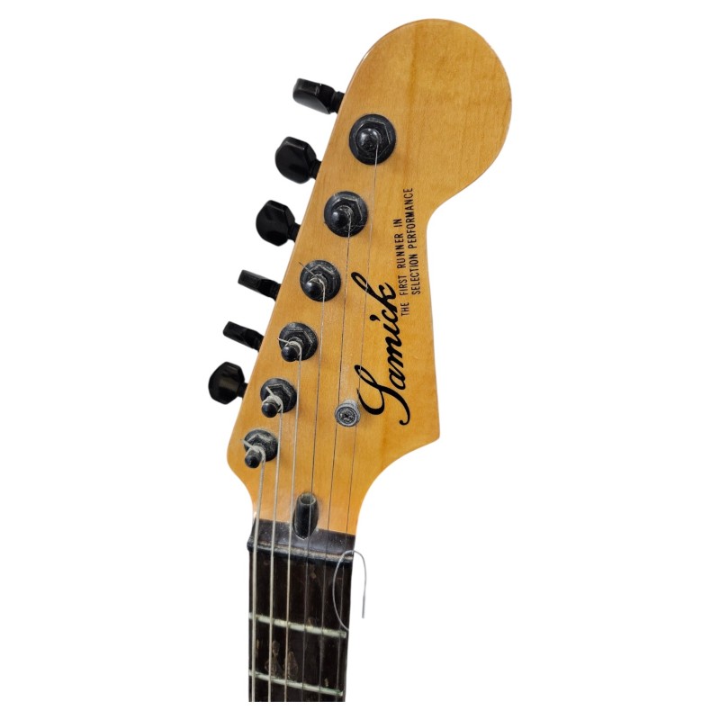 This Samick electric guitar, the "The First Runner in Selection Performance", is a versatile and well-crafted instrument. With its sleek design and reliable performance features, it's ready to accompany you on your musical journey. While it may show light cosmetic wear from previous use, this guitar remains in excellent working condition, ready to deliver a rich, resonant sound.