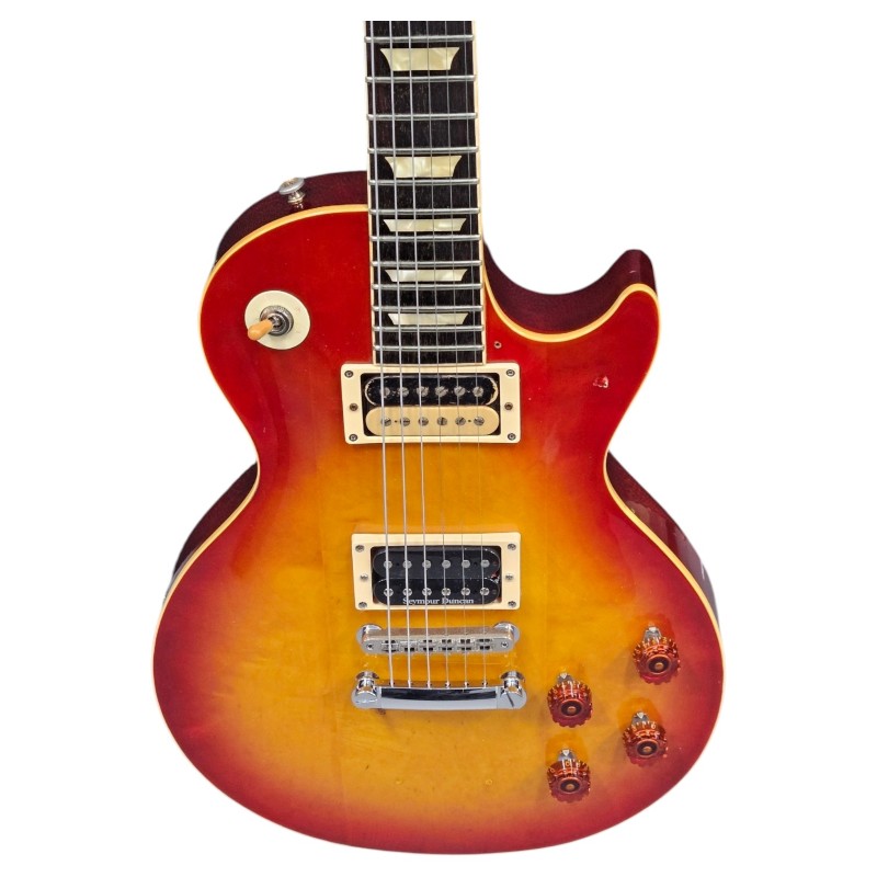 This Tokai LS-60BS Les Paul Reborn Sunburst is a vintage-inspired electric guitar from Japan. With its iconic Les Paul-style body and sunburst finish, this guitar delivers a rich, warm tone perfect for a variety of musical styles. The guitar features a solid body construction and a set neck design for excellent playability and sustain. Despite its vintage aesthetic, this guitar has been meticulously crafted to provide modern performance and reliability.