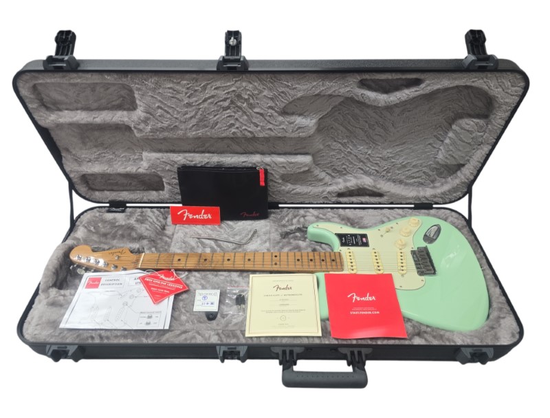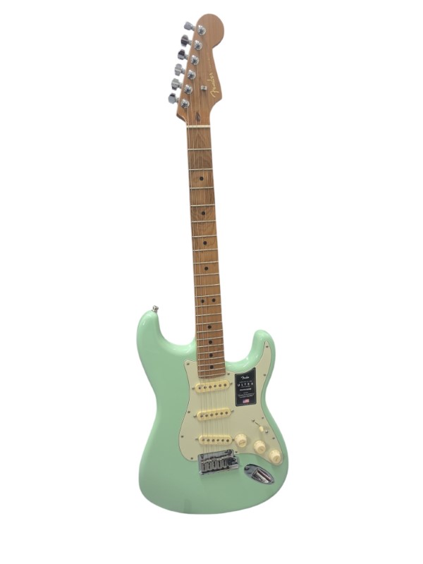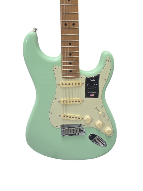 This limited edition Fender American Ultra Stratocaster electric guitar in Sea Foam Green is a stunning instrument with exceptional playability and tone. Crafted with premium materials and advanced features, it delivers a versatile and responsive playing experience.