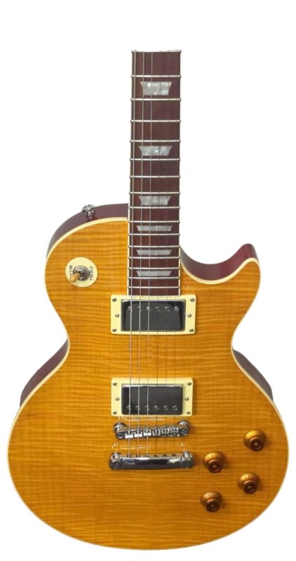 The Tokai Les Paul Love Rock 2019 made in China is a premium electric guitar that delivers exceptional sound and performance. Featuring a classic Les Paul design, this guitar offers a soft case and upgraded pickups for added versatility. With its solid construction and little sign of wear, this guitar is in good condition, making it a reliable choice for musicians of all skill levels. Pick guard is missing.