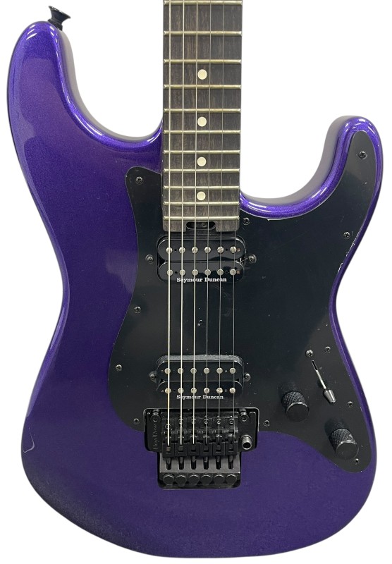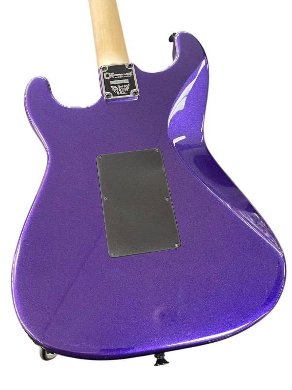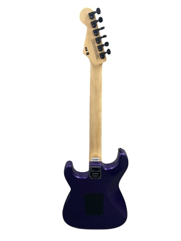 The Floyd Rose 1000 Series double-locking tremolo keeps tuning rock-solid no matter how wild your dive bombs get, while the Charvel sealed die-cast tuners ensure precision and stability. The hardware’s sleek black finish perfectly complements the deep purple body for a bold, modern aesthetic.