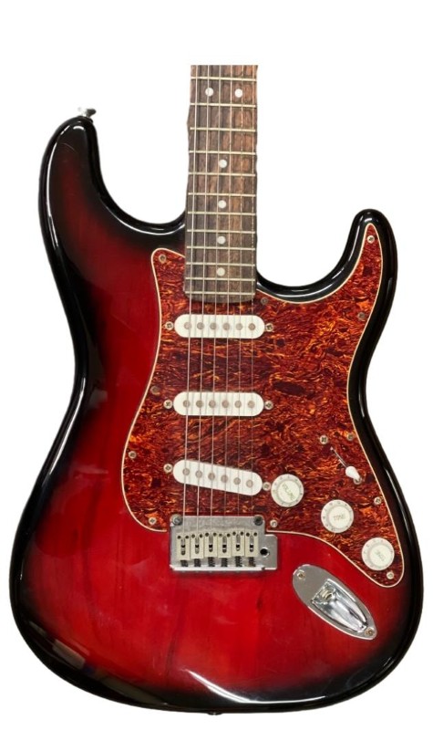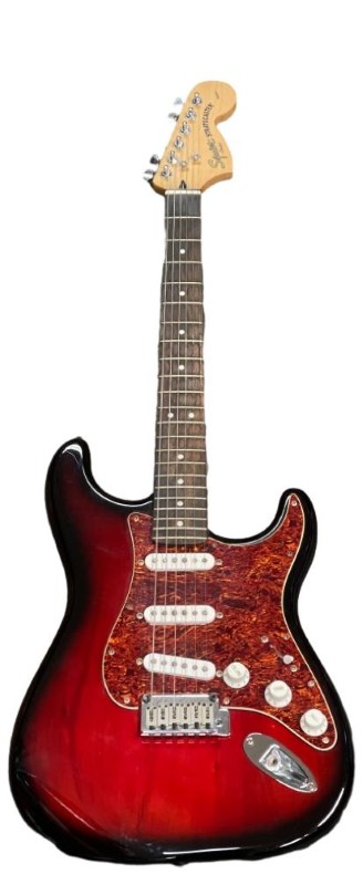This Fender Squire Stratocaster electric guitar from 2008 is in great condition and ready to play. With its iconic Stratocaster design, it delivers a classic tone and playing experience. The included guitar bag provides convenient storage and transportation.