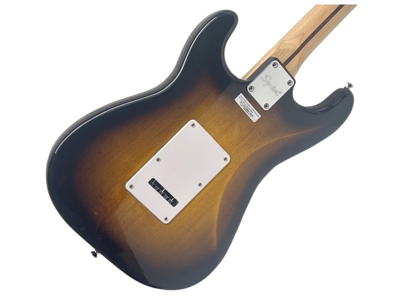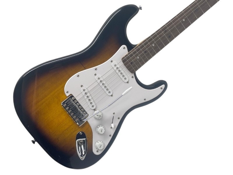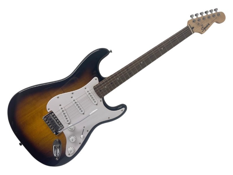 This Squier by Fender Stratocaster in a classic Brown Sunburst finish is a well-made electric guitar that delivers a versatile sound. With its iconic Stratocaster design, it features a comfortable maple neck and a solid alder body that resonates beautifully. The three single-coil pickups provide a wide range of tones, from crisp cleans to rich, sustained distortion. Despite some minor signs of wear, this guitar remains in good condition and is ready to take the stage or studio by storm.