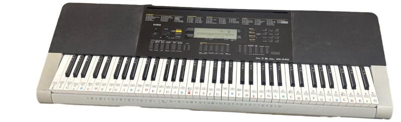 This Casio WK-240 keyboard is a versatile musical instrument suitable for both beginners and experienced players. With a range of features, it offers a great way to explore and develop your musical skills. The keyboard comes with a stand and power supply, allowing you to set it up and start playing right away.