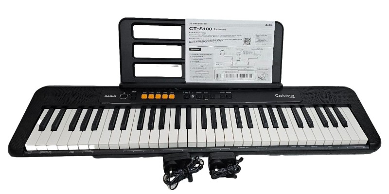 This compact and versatile Casio Casiotone CT-S100 keyboard is an excellent choice for aspiring musicians. With its modern design and intuitive controls, it offers a range of features to enhance your musical experience. The keyboard boasts a diverse sound library, allowing you to explore a variety of instrument tones and styles. Its compact size makes it easy to transport and set up, making it a great option for both practice and performance.