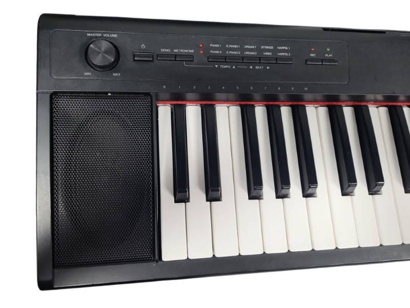 This compact and versatile Yamaha NP-12 keyboard is perfect for aspiring musicians. With its responsive keys and intuitive controls, it offers a seamless playing experience, whether you're practising at home or performing on the go. The included power adapter ensures reliable operation, making it a reliable companion for your musical journey. Despite some minor signs of wear, this keyboard remains in good condition, ready to help you explore the world of music.