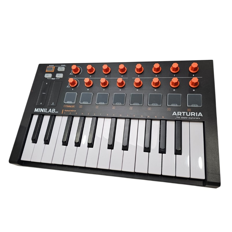 This compact and versatile Arturia Minilab MkII keyboard is an excellent choice for music production and performance. With its 25 velocity-sensitive keys, 16 RGB-backlit pads, and intuitive controls, it provides a seamless interface for creating music on the go. The compact design makes it highly portable, allowing you to take your creative process wherever inspiration strikes. Whether you're a seasoned musician or just starting your musical journey, this keyboard is a reliable and powerful tool to enhance your musical expression.