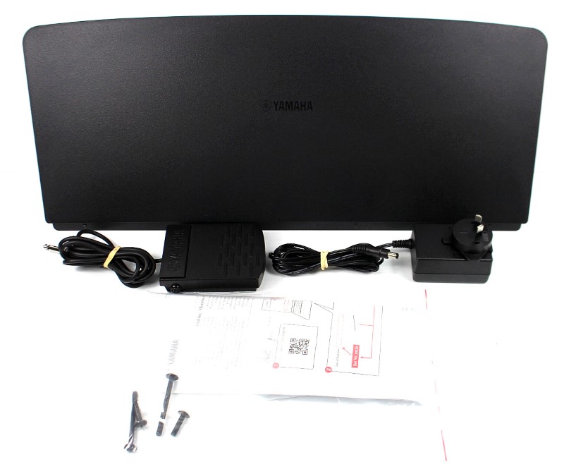 Includes the sheet music stand, power cable, peddle, original box, foam inserts and stand.