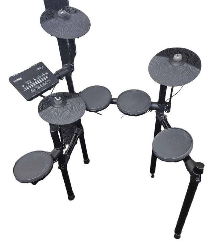 This Yamaha VAS7460/DTX402K Electric Drum Kit is a versatile percussion instrument perfect for aspiring drummers and music enthusiasts. Boasting a sleek and compact design, this drum kit offers a dynamic and responsive playing experience. The kit includes essential accessories such as power lead, headphones, dual pedals, and drum sticks, allowing you to dive into the world of electronic drumming right away.
